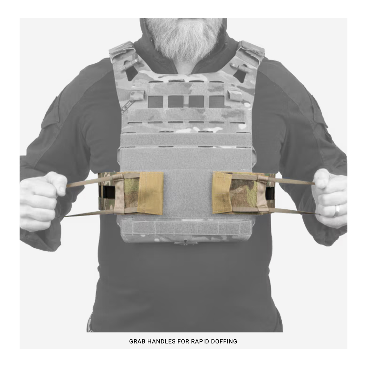 The Crye Airlite Structural Cummerbund provides rigidity and structure for supporting side plates and heavy loads. It is compatible with Crye Precision’s Extendable STKSS system (External Site) which reduces load on the shoulders and back. Pouches can be mounted on both the inside and outside of the cummerbund. It is designed for use with Crye’s AIRLITE SPC and is also compatible with the side plate pouches. Simply slide the pouches onto the cummerbund without having to MOLLE them on.
